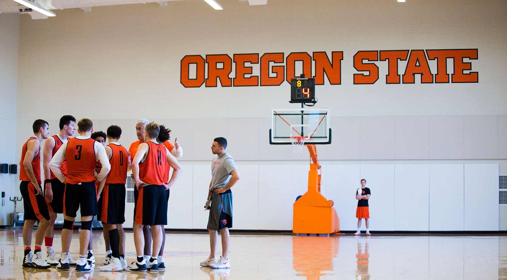 Opened in the summer of 2013, the OSU Basketball Center serves as the primary training complex for the Beavers. A stunning view of OSU's beautiful campus highlights a full-size practice court, with 94 feet of glass flooding the area with natural light. Just above the court rests 2,000-square-foot partial floors coach and program staff offices. These spaces run the length of the building and offer panoramic views of the court below. Together, the court and program space create a “home” where the sense of family that is the distinctive edge for every Oregon State team can be fostered. The space also includes a locker room, team area, and satellite athletic training room.